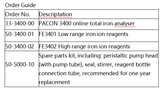 PACON 3400 is a compact, easy to operate and accurate on-line iron ion analyser from JENSPRIMA for measuring the concentration of dissolved iron (divalent and trivalent iron) in water for controlled iron ion removal. The colorimetric principle allows the measurement of high/low ranges by selecting different reagents. Low maintenance and low reagent consumption for long continuous operation. Standard 4-20mA and RS485 Modbus outputs for easy integration into your existing control system.